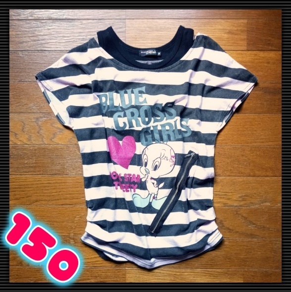 > トゥイーティー Tweety Bird ボーダー 半袖 一分袖 ドルマン フレンチ 150 M レディース BLUE CROSS spicy label ワーナーブラザース 古着