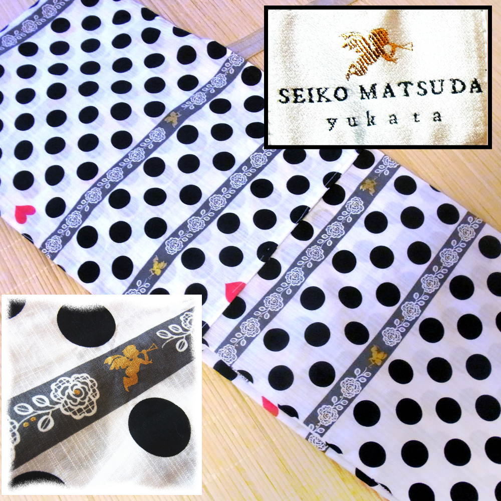 > 【カジュアル・モダンなデザイン♪】セイコ・マツダ 松田聖子デザイン ドット柄 モノクロ レディース浴衣 身丈164㎝ 裄67㎝ 綿100%