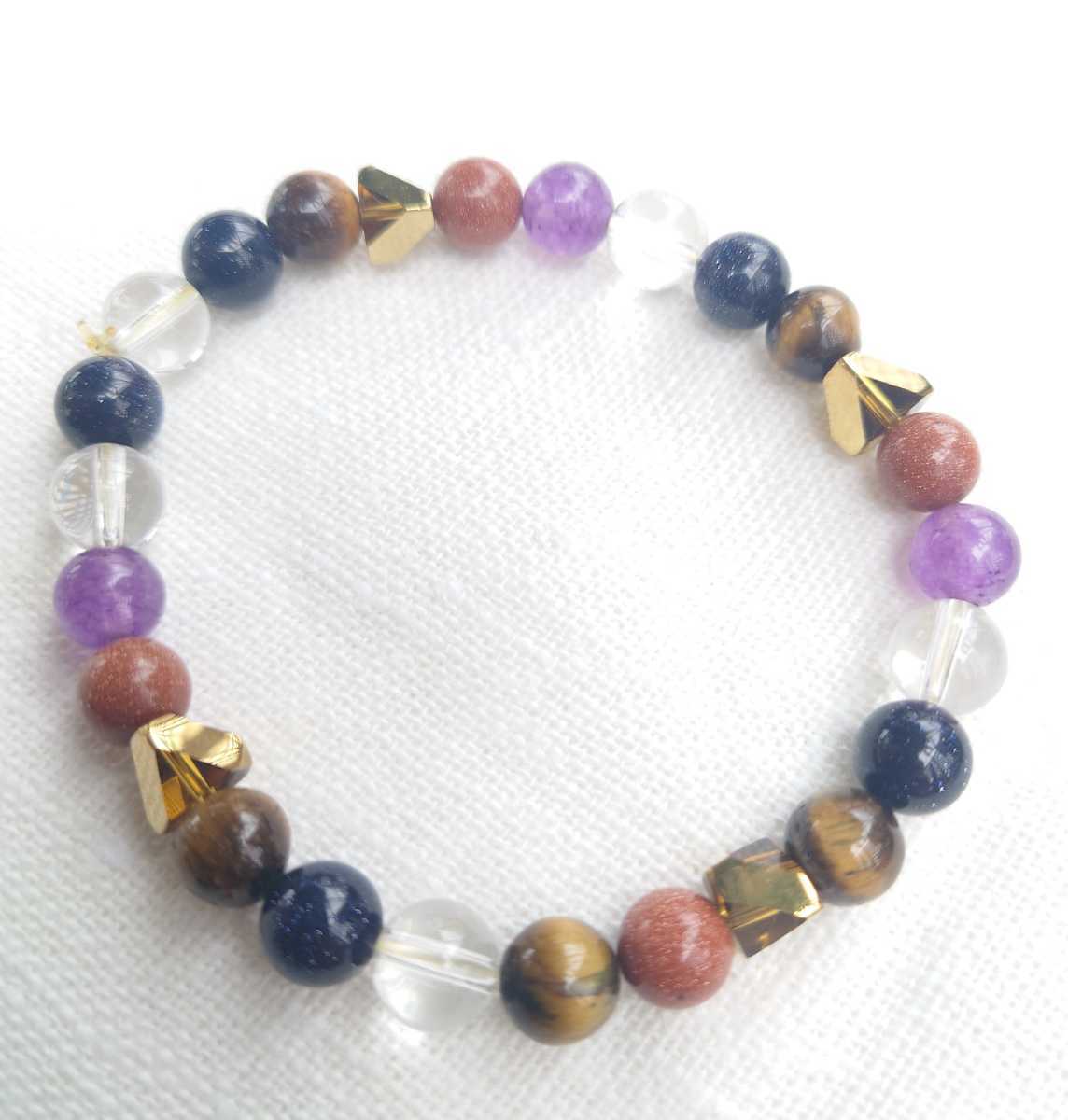 - 天然石ブレスレット 虎目石 水晶 アメジスト 茶金石 紫金石 オリジナル シリコンゴム パワーストーン オリジナルデザイン