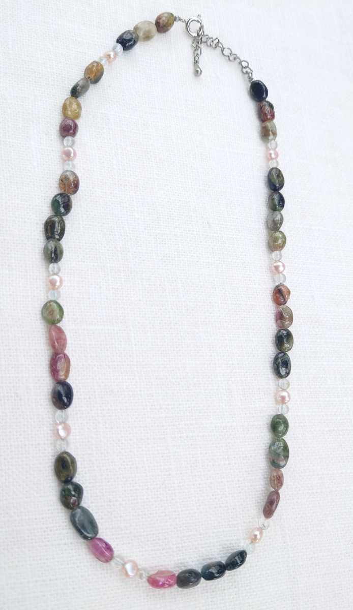- ネックレス 天然石 水晶 トルマリン 淡水真珠 電気石 パワーストーン カラフル オリジナル アジャスター式