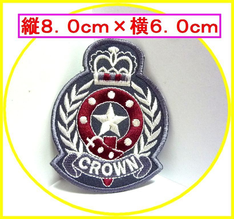- アイロン 接着 刺繍 ワッペン!CROWN 灰色! ワンポイント 雑貨 アメ雑 おしゃれ