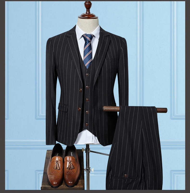 - スリーピーススーツ チェック柄 3点セット ビジネススーツ ベスト ブレザー フォーマル パンツ 就職 結婚式 [M-4XL]選択可 黒