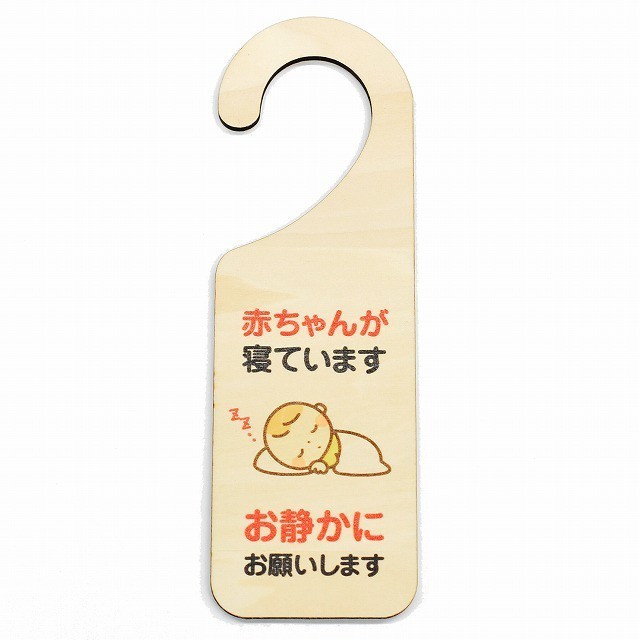 > 木製サインプレート ドアプレート 赤ちゃんが寝ています メッセージプレート ドアフック 吊り下げ ハンドメイド 送料無料