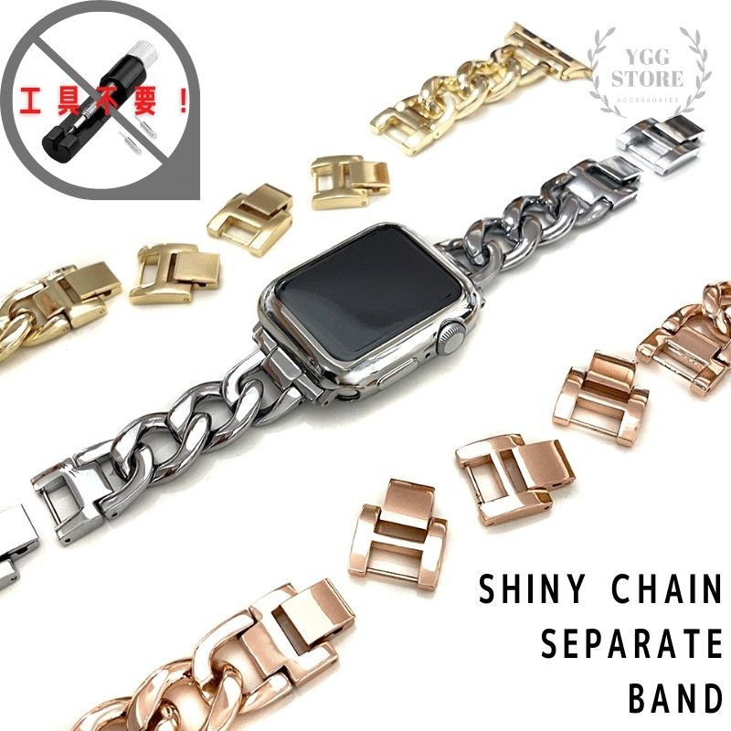 > 【調節工具不要】applewatch アップルウォッチ チェーン セパレート シャイニー バンド シルバー 38 40 41 series 9 8 7 6 5 4 3 SE