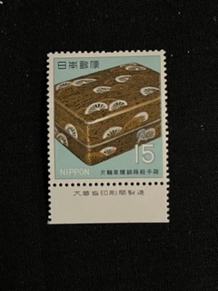 - 切手 単片 【第1次国宝シリーズ】平安時代 片輪車螺鈿蒔絵手箱 銘板付き