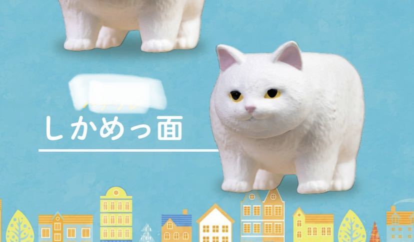 - ★ミニチュアネコフィギュア★ガチャガチャ ネコピラミッド 白ネコ しかめっ面