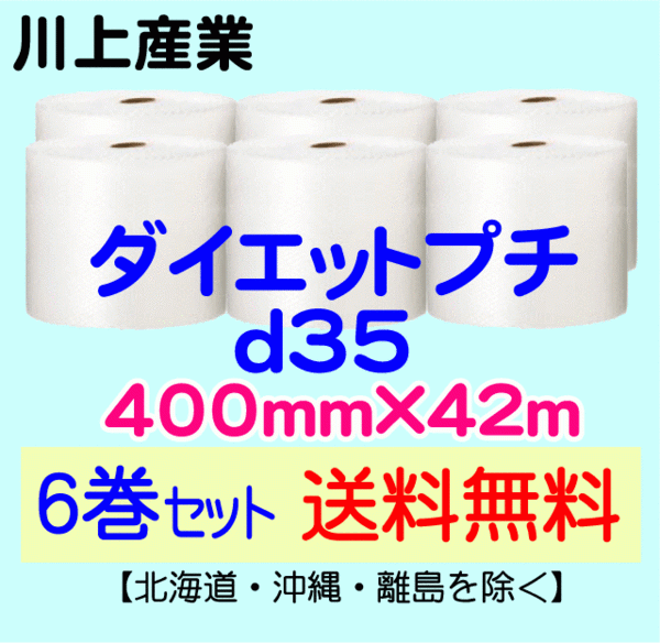 - 【川上産業 直送 6巻set 送料無料】d35 400mm×42m エアークッション エアパッキン プチプチ エアキャップ 気泡緩衝材