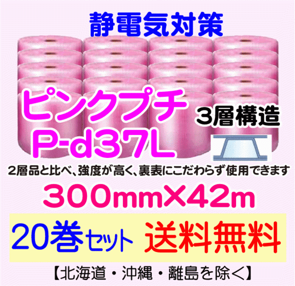 > 【川上産業 直送 20本set送料無料】P-d37L 300mm×42m 3層 ピンクプチ 静防プチ エアークッション エアパッキン プチプチ 緩衝材