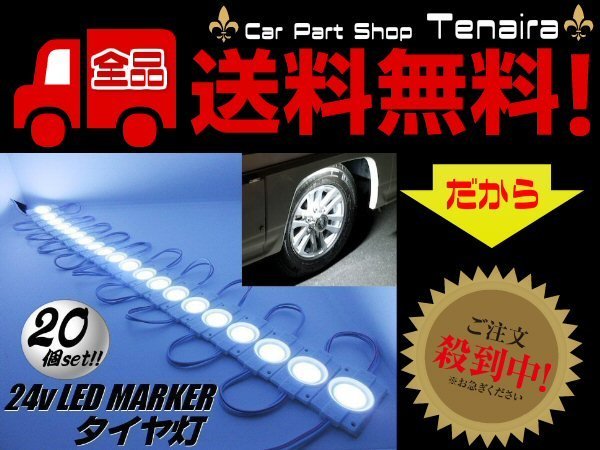> 24v トラック LED タイヤ灯 サイド マーカー 20個 20コマ 白色 ホワイト カット可 アンダー ライト ランプ バス 路肩灯 メール便送料無料/4