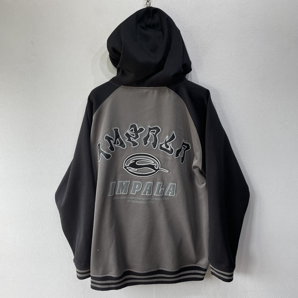 - 【人気】 インパラ パーカー メンズ Lサイズ相当 灰/グレー ビッグロゴ 黒/ブラック アメ車 動物 K2168