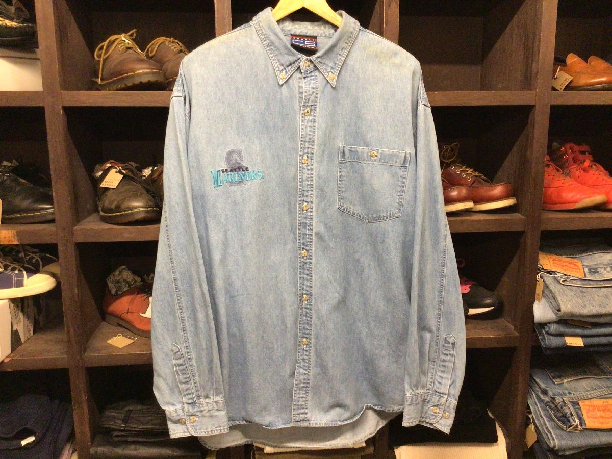 - ビッグサイズ SEATLE MARINERS CRABLE SPORTSWEAR DENIM SHIRT SIZE XL シアトル マリナーズ デニム シャツ 長袖 MLB メジャーリーグ