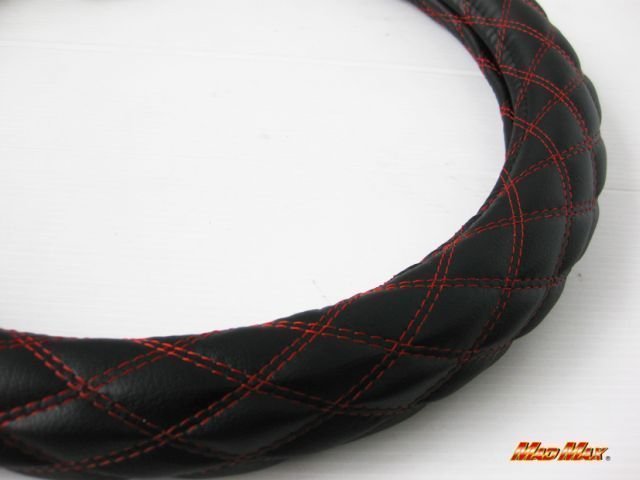 - 【送料800円】トラック用品 国産 ソフトレザー ブラック/レッド ダブルステッチ ハンドルカバー 2HS/ステアリングカバー