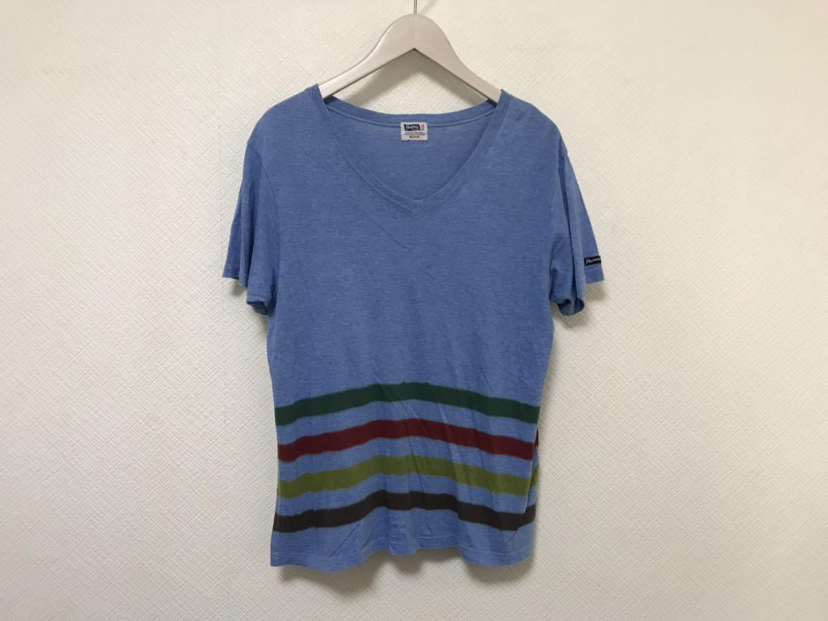 - 本物フェローズpherrow'sコットンレーヨンVネック半袖Tシャツメンズビジネスアメカジミリタリーサーフ青ブルー柄M日本製
