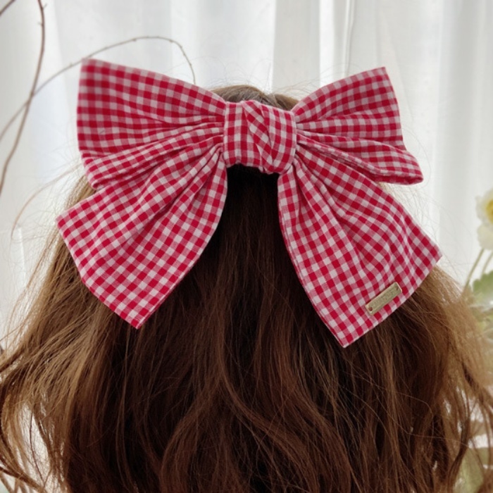 - 送料無料★即納!ワンランク上のヘアアクセサリー 可愛い おしゃれ 簡単 ヘアアレンジ★バレッタ/チェックレッドリボン