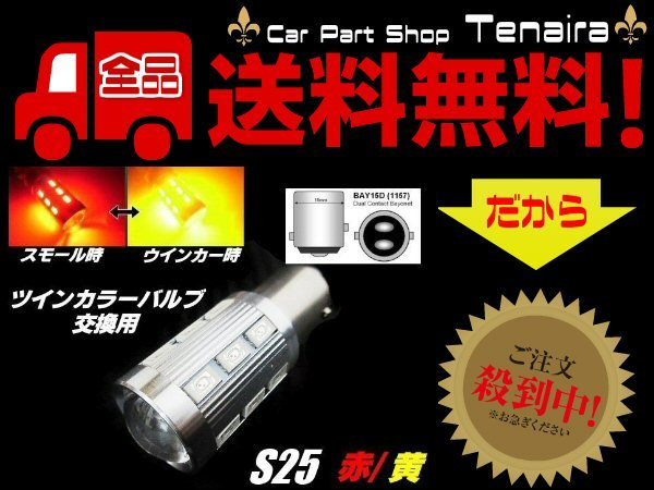 > S25 ツインカラー LED バルブ のみ 1球 赤 黄 アンバー 交換用 ウィンカー ポジション ウィポジ 予備 球切れ 修理 メール便送料無料/2