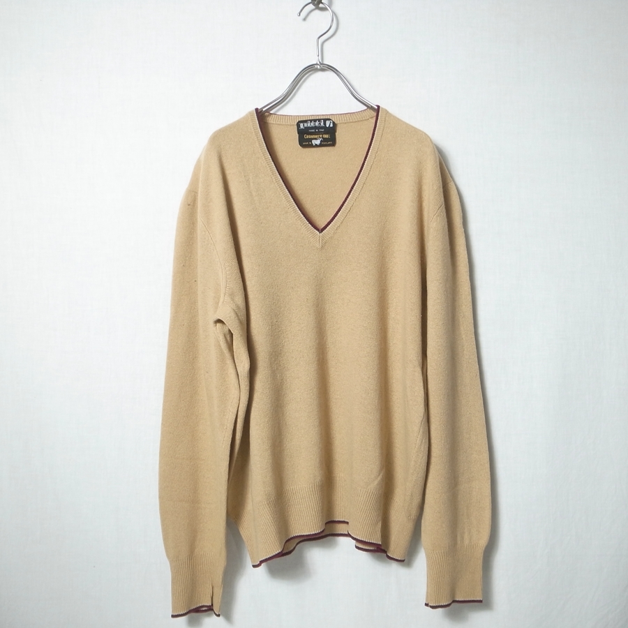 > イタリア製 ヴィンテージ Pitti カシミア100% Vネック ニット セーター / 70s 80s 高級 パイピング ヨーロッパ古着
