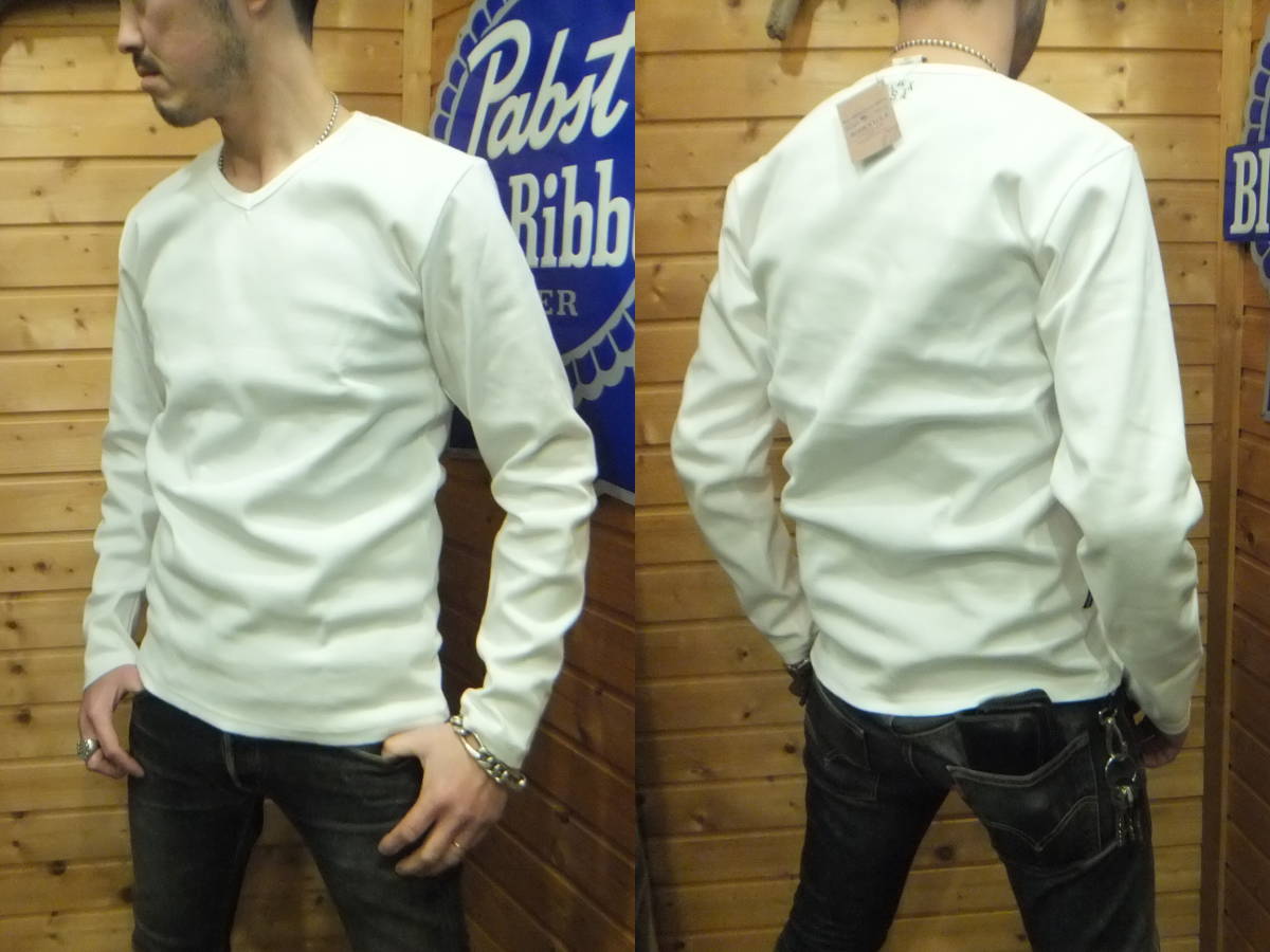 - アヴィレックス正規店 リブ素材 Vネック長袖Tシャツ[白][S]新品 6153480-01 ※〒レターパック発送