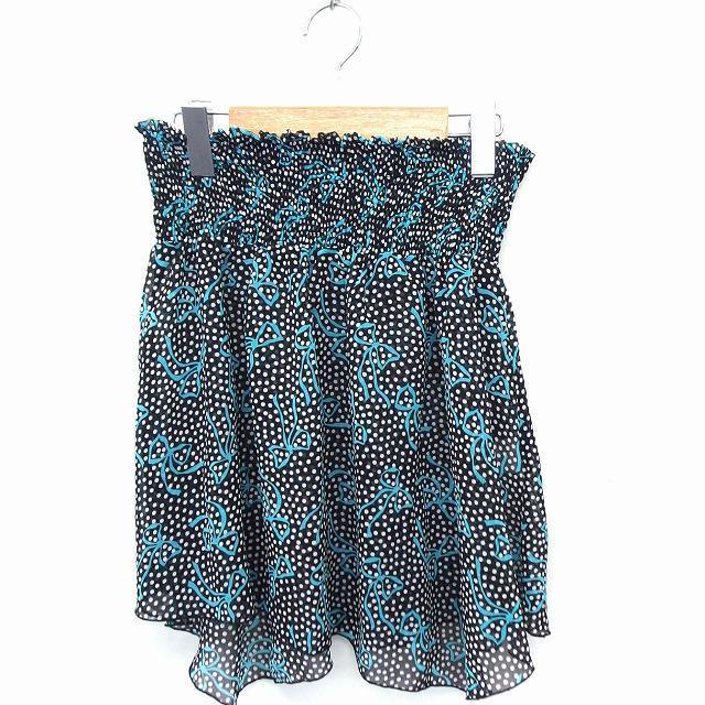 > LIVE IN COMFORT スカート ドット柄 リボン柄 ギャザー ミニ L ブラック 黒 /FT15 レディース