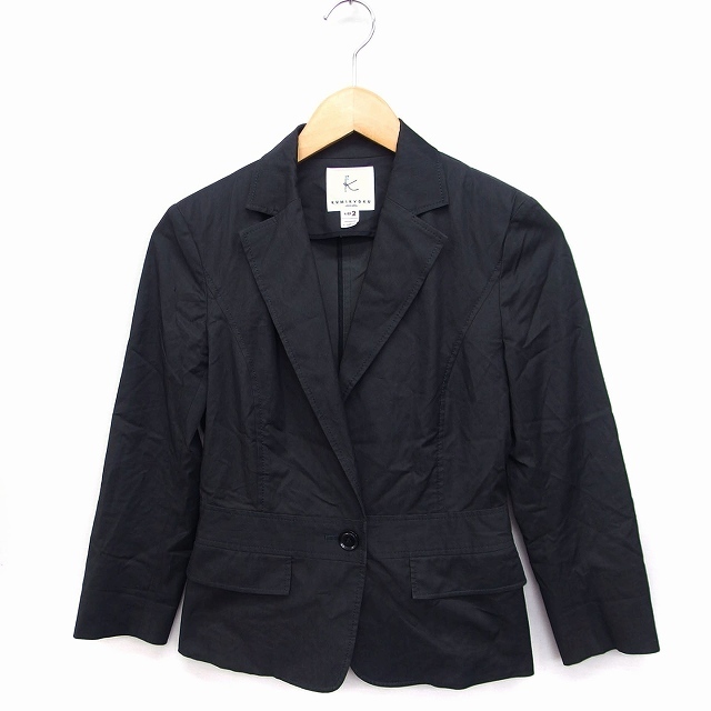 - クミキョク 組曲 KUMIKYOKU テーラード ジャケット アウター 七分袖 無地 コットン 綿 2 ブラック 黒 /FT15 レディース