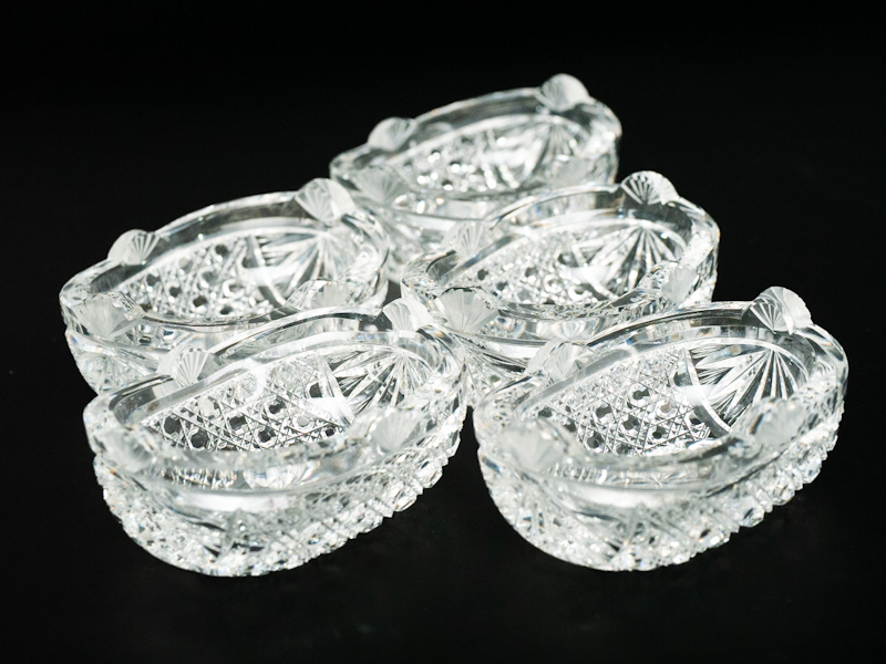 - 【値下げ交渉有り】 江戸切子 八角籠目文 船型 向付 小鉢 五客 共箱