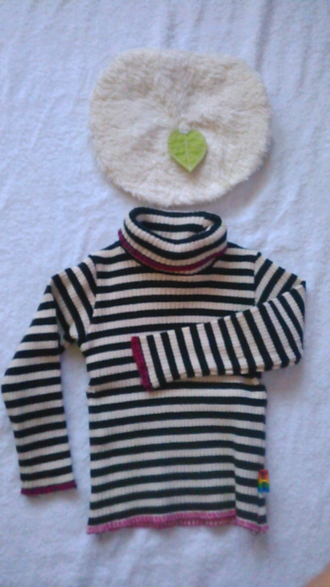 - 【古着】ブーフーウー ハイネックセーター+帽子(90)白×黒ボーダー