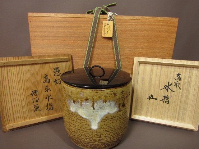 - 期間限定!送料無料!11月末まで!古高取水指 裏千家十代 認得斎 花押 十五代 鵬雲斎 追箱 二重箱☆273