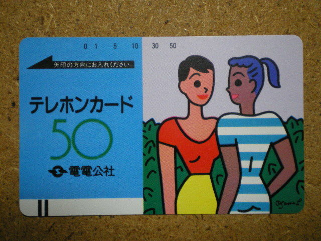 - dend・110-002 イラスト原田治 Ⅲ版w バー下付 裏 緑の電話文字あり 電電公社 未使用 50度数 テレカ
