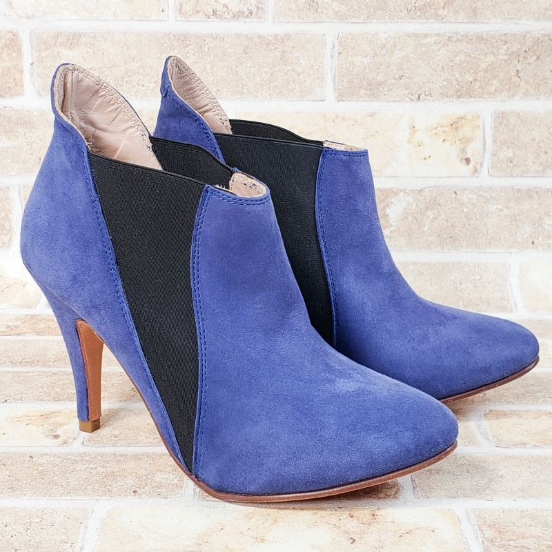 - 美品 ヴォッリ スエードレザー サイドゴア風 ブーティ 36 スペイン製 ブルー系 ヒールブーツ Vogli