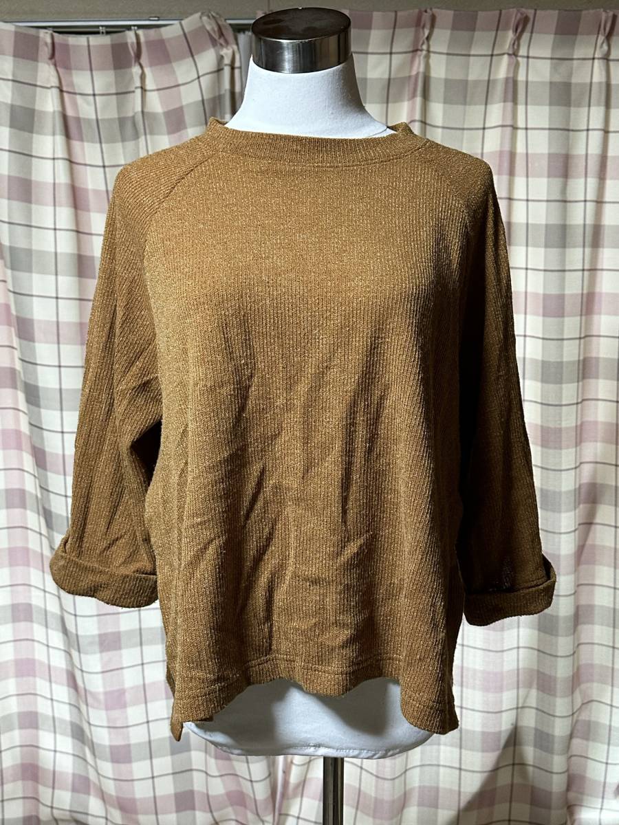 - 243) Live in confortの薄手の五分袖ブラウン系セーター(USED、美品)