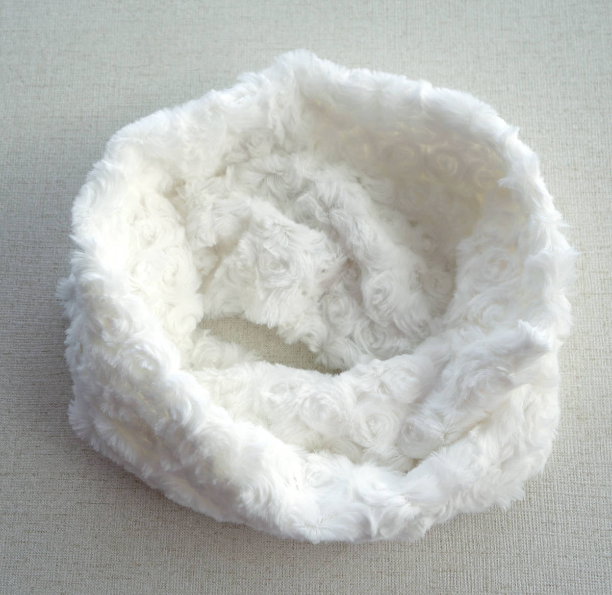 - ★ ハンドメイド オフホワイト くるくるボアスヌード ティーン用 ★