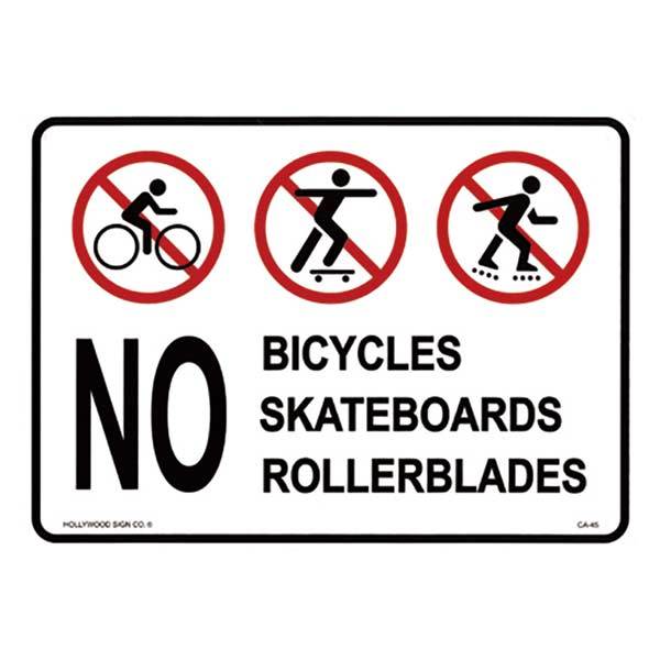 - プラスチックサインボード『NO BICYCLES SKATEBOARDS ROLLERBLADES 』自転車 スケボー ローラーブレード禁止 看板 [CA-45]アメリカン雑貨