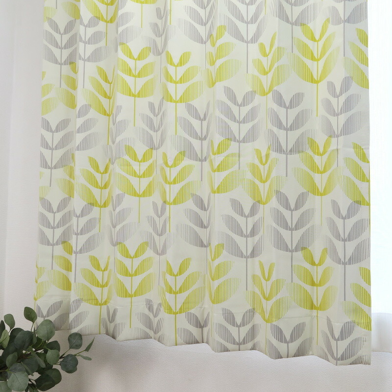 - 遮光カーテン 北欧柄 イエロー 幅200cm×丈235cm1枚 日本製 プリーツが綺麗な形態安定加工