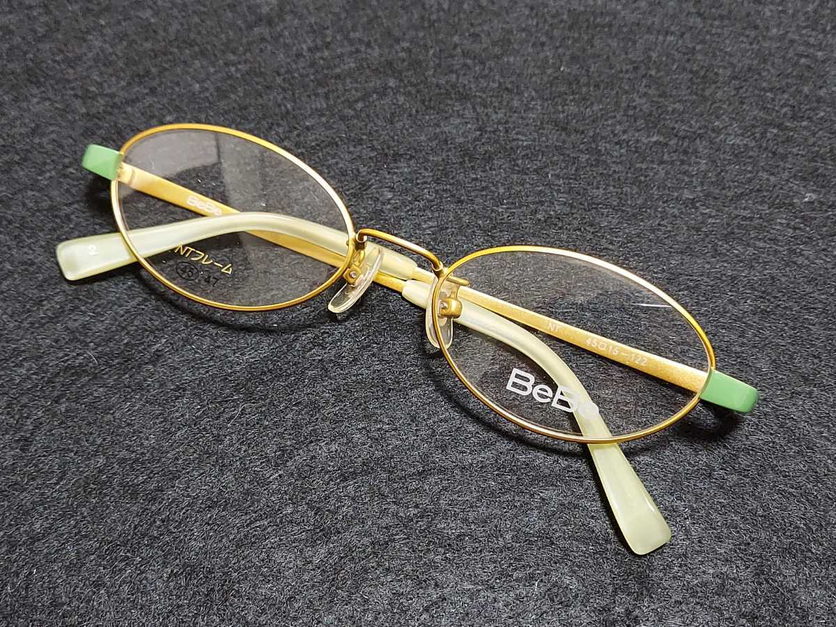 > 新品 BeBe ベベ ブランド メガネ 眼鏡 高級感 上品 フルリム 黄色 イエロー 軽い 子供用 キッズ オーバル