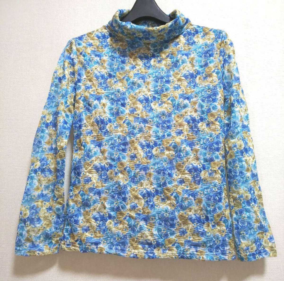 - ブルー&ゴールド ローズ柄 トップス
