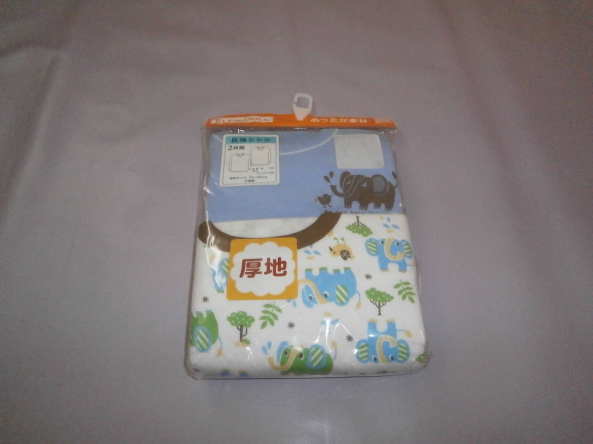 > 即決★新品★男児男の子★あったか素材★長袖シャツ★2枚組★サイズ70★水色 ぞう 白地■肌着下着インナーシャツタンクトップ長袖シャツ
