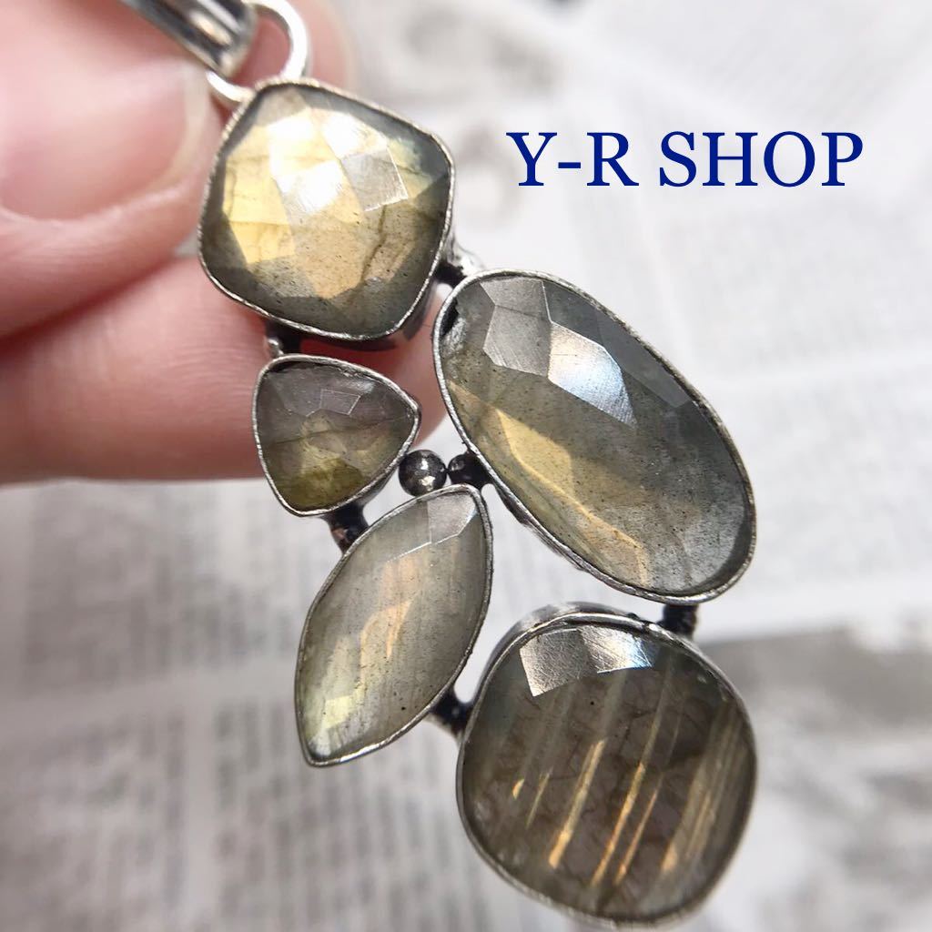 - 天然石★ラブラドライトのエスニックペンダントトップ★レディースネックレスシルバー 925刻印カラーストーン インドジュエリーY-RSHOP新品