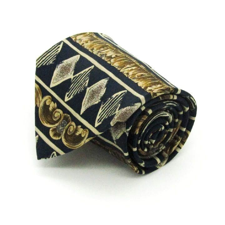 - ランセル 総柄 シルク ブランド ネクタイ メンズ ネイビー 良品 LANCEL