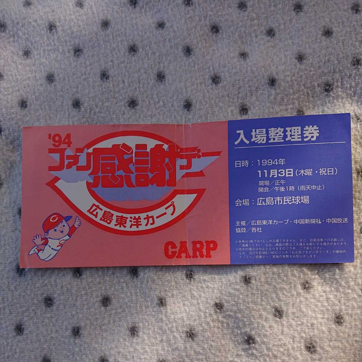 > ’94 広島東洋カープ ファン感謝デー 使用済み 入場整理券 ☆ 1994年11月3日 広島市民球場 ☆ 広島 カープ CARP
