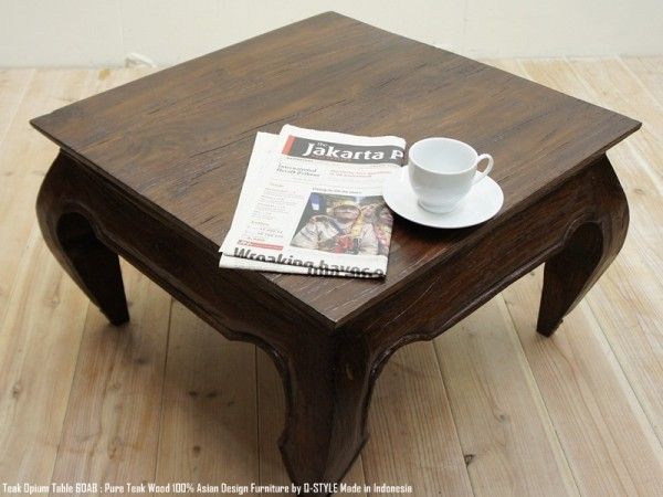 - チーク無垢材 オピウムテーブル60cm×60cm AB アンティークブラウン ちゃぶ台 ローテーブル アジアン家具 正方形テーブル スクエア
