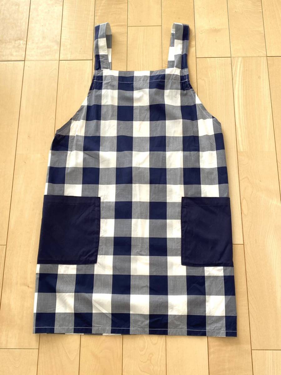 - ハンドメイド★エプロン Mサイズ 150cm程 ブルーチェック(164)値下げ