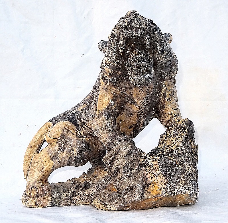 - 石彫の虎 トラ 硬い石 長さ38cm 庭の置物 インテリア 飾り トラの置物・お部屋のアクセント