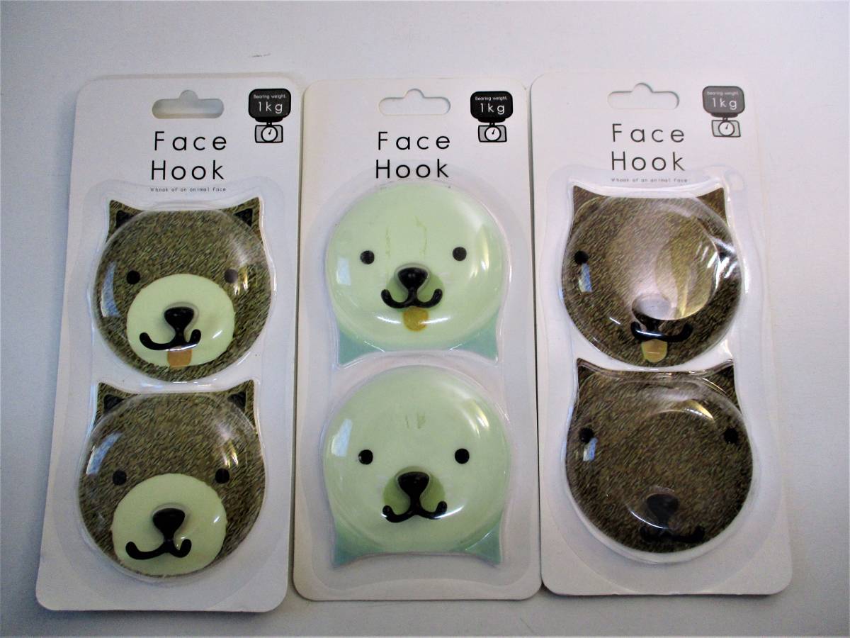 - ◆東洋ケース ◆フック 吸着シートタイプ 2個組 Face Hook 吸着シートフック 【クマ 】【アザラシ】【カピバラ 】 3個組セット