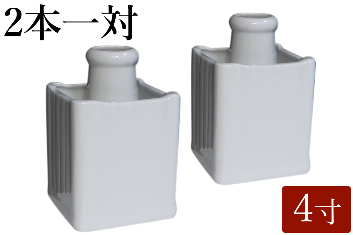 - 国産 神棚用 神具 2本組 角花榊立 一対 4寸 高さ12.5cm 【中型】