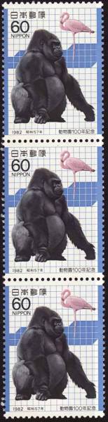 - ◆縦・連刷◆ ゴリラ&フラミンゴ『動物園100年』記念切手☆1982年発行【未使用】送料85円~