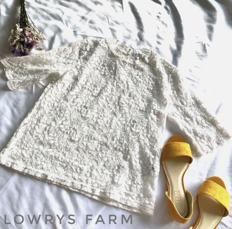 > 【未使用品美品】LOWRYS FARM ローリーズファーム★ハイネックレースプルオーバー レースカットソー 5分袖 Mサイズ