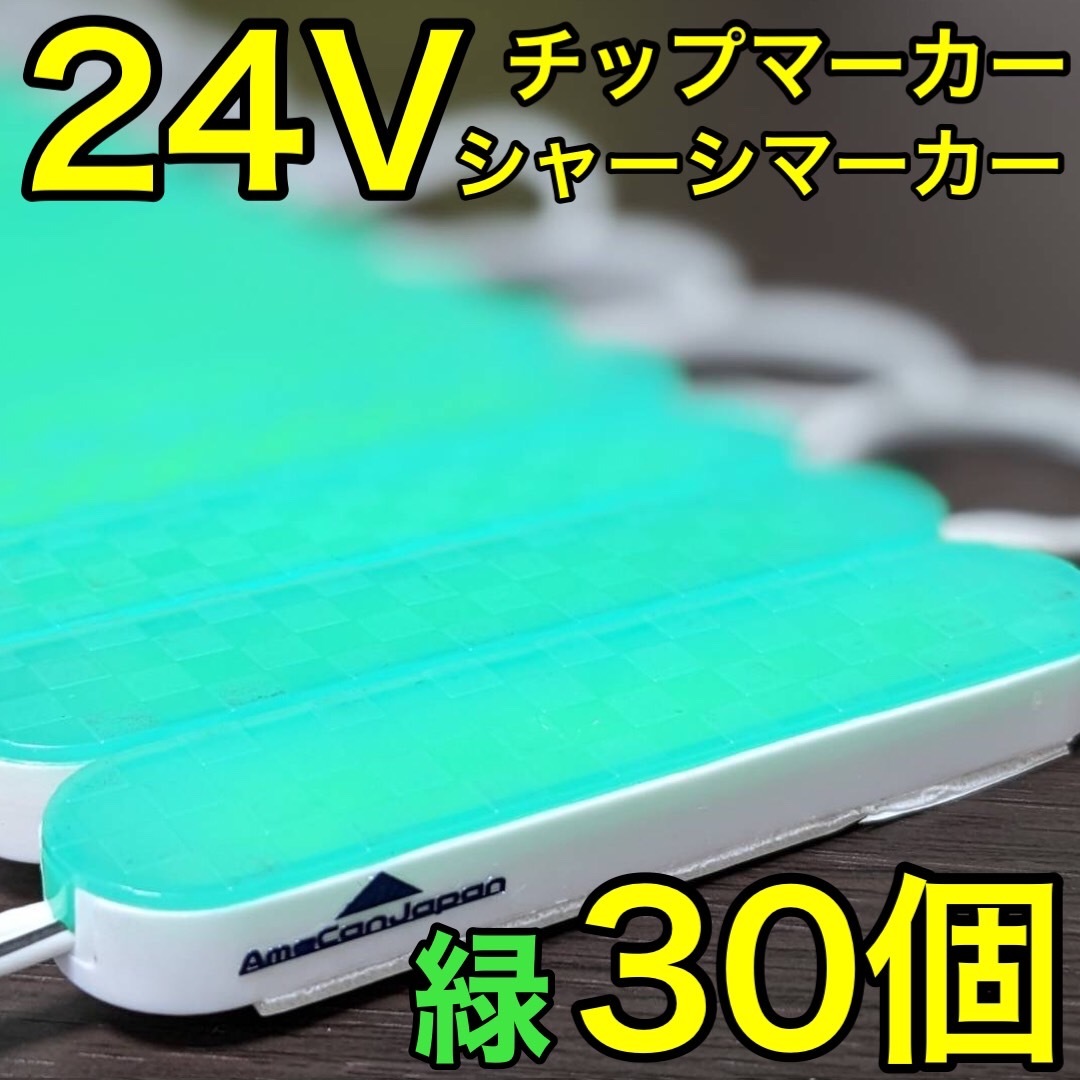 > 超爆光 24V LED ICチップ搭載 チップマーカー シャーシマーカー 低床4軸 クリアカバー 防水 防塵 トラック デコトラ グリーン 緑 30コマ