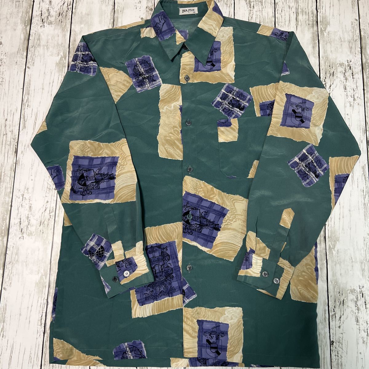 - BEA FIVE 総柄 柄シャツ レトロ アート ビンテージ 長袖シャツ ポリシャツ