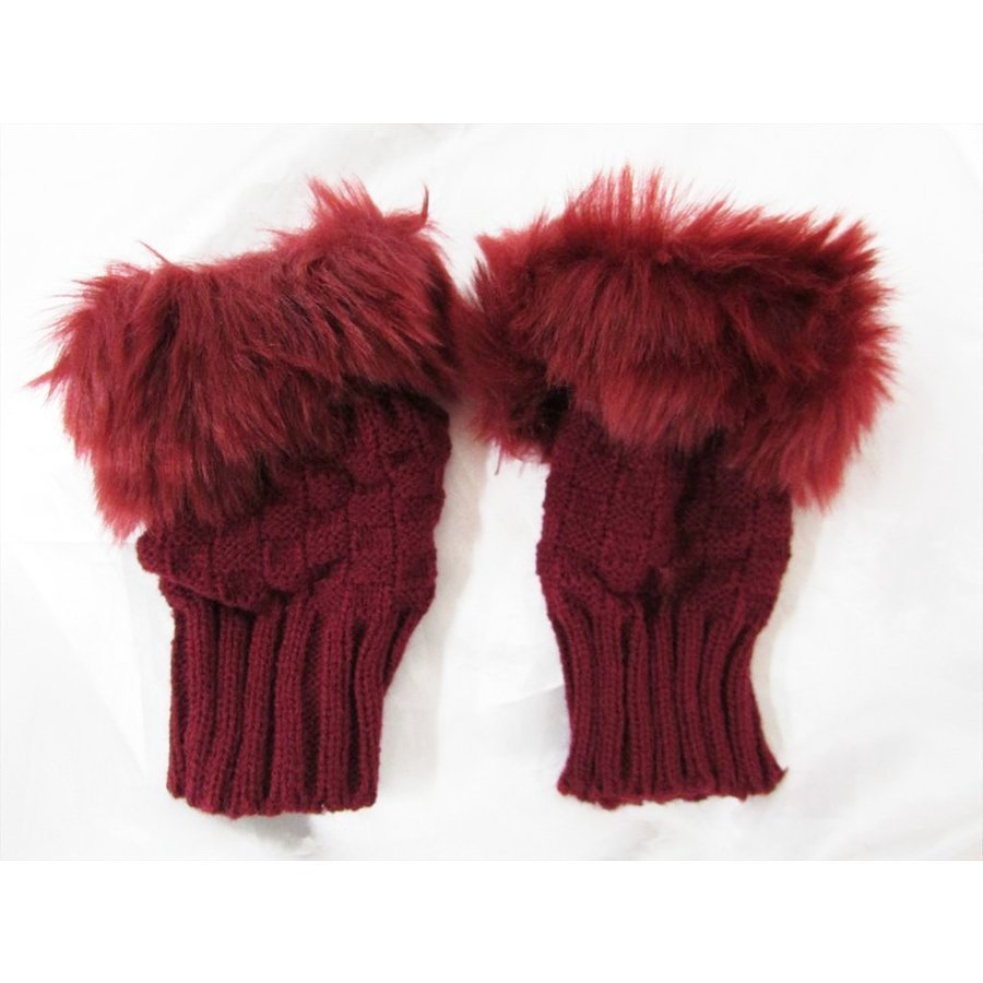- ニット 手袋 アームウォーマー ショートタイプ ファー ワインレッド GR008-WI スマホ手袋