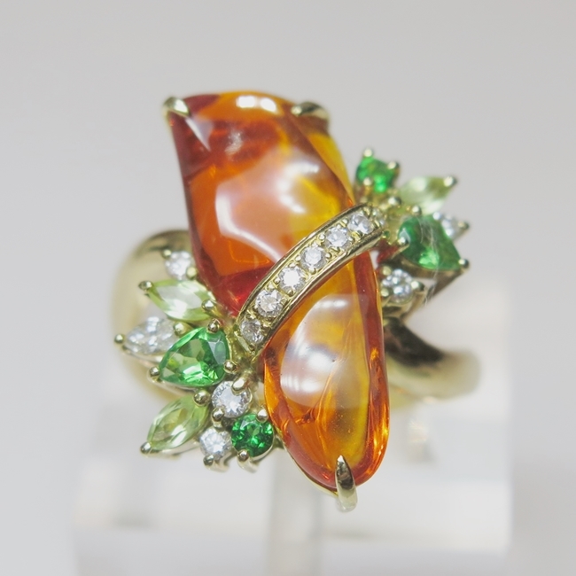 - K18YG イエローゴールド 指輪 リング ファイヤーオパール 4.490ct ダイヤモンド0.240ct 14号 おしゃれ 【中古】/10025145