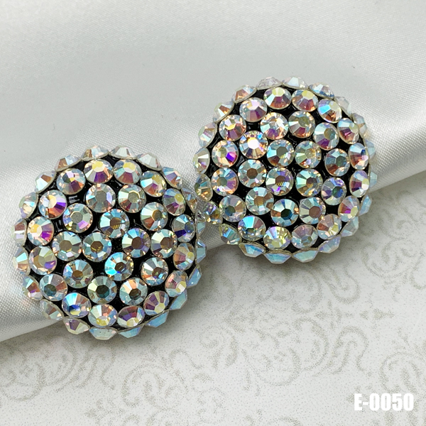 - 送料無料!! 直径30mm 大きな キラキラ!クリア系 ラインストーン 丸形 イヤリング アクセサリー ◇E-0050